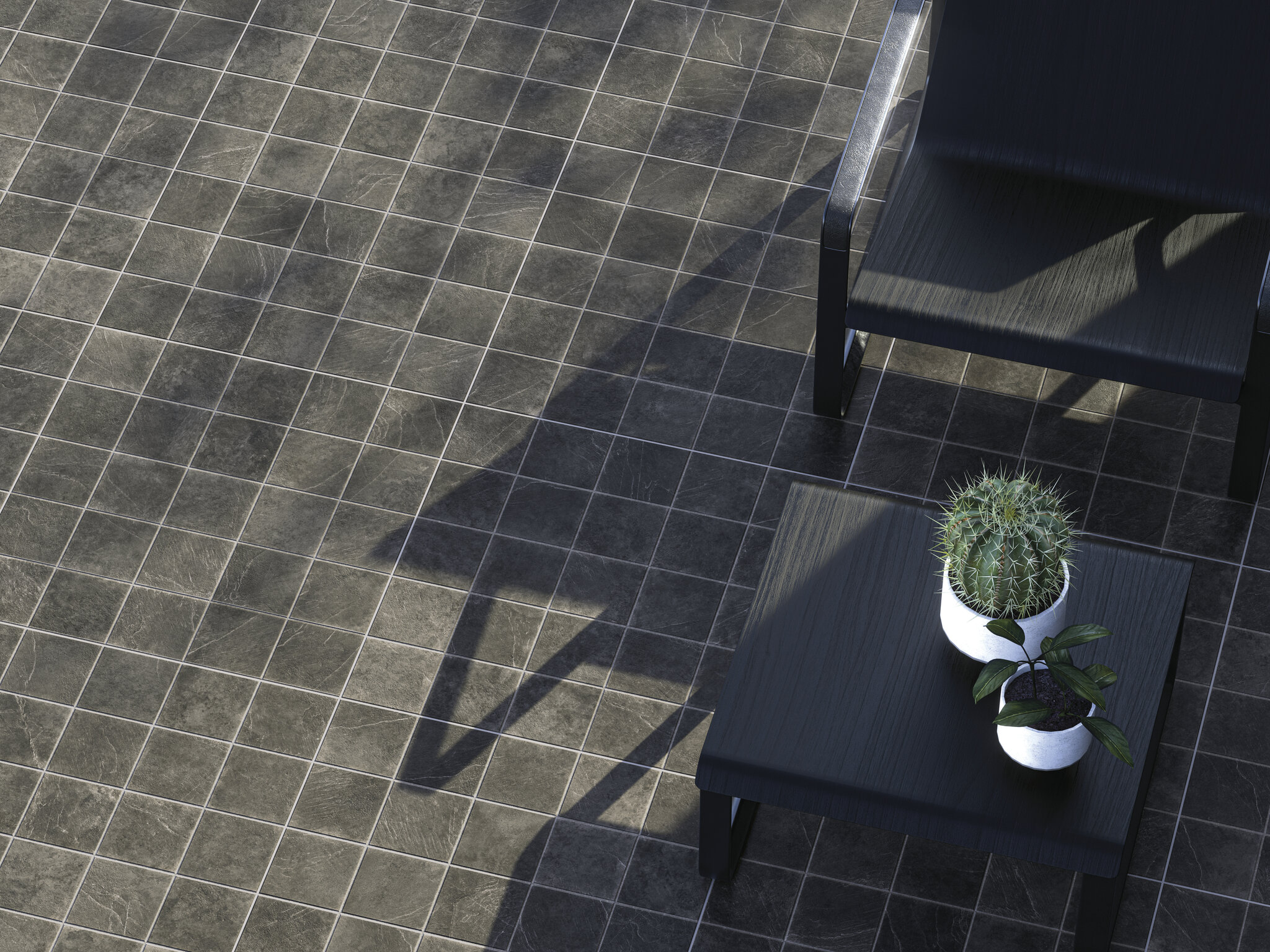 There are ceramic collections that aspire to be seen and even admired. Collections that stand out for their strong character and for giving personality to any space they cover. This is the case of Pisano, a collection of 60x60cm porcelain tiles that makes dark colours a hallmark of identity. Pisano is available in two colours, a mix of browns, greys and blacks and a slate black and has a antislip finish for use in any type of space.