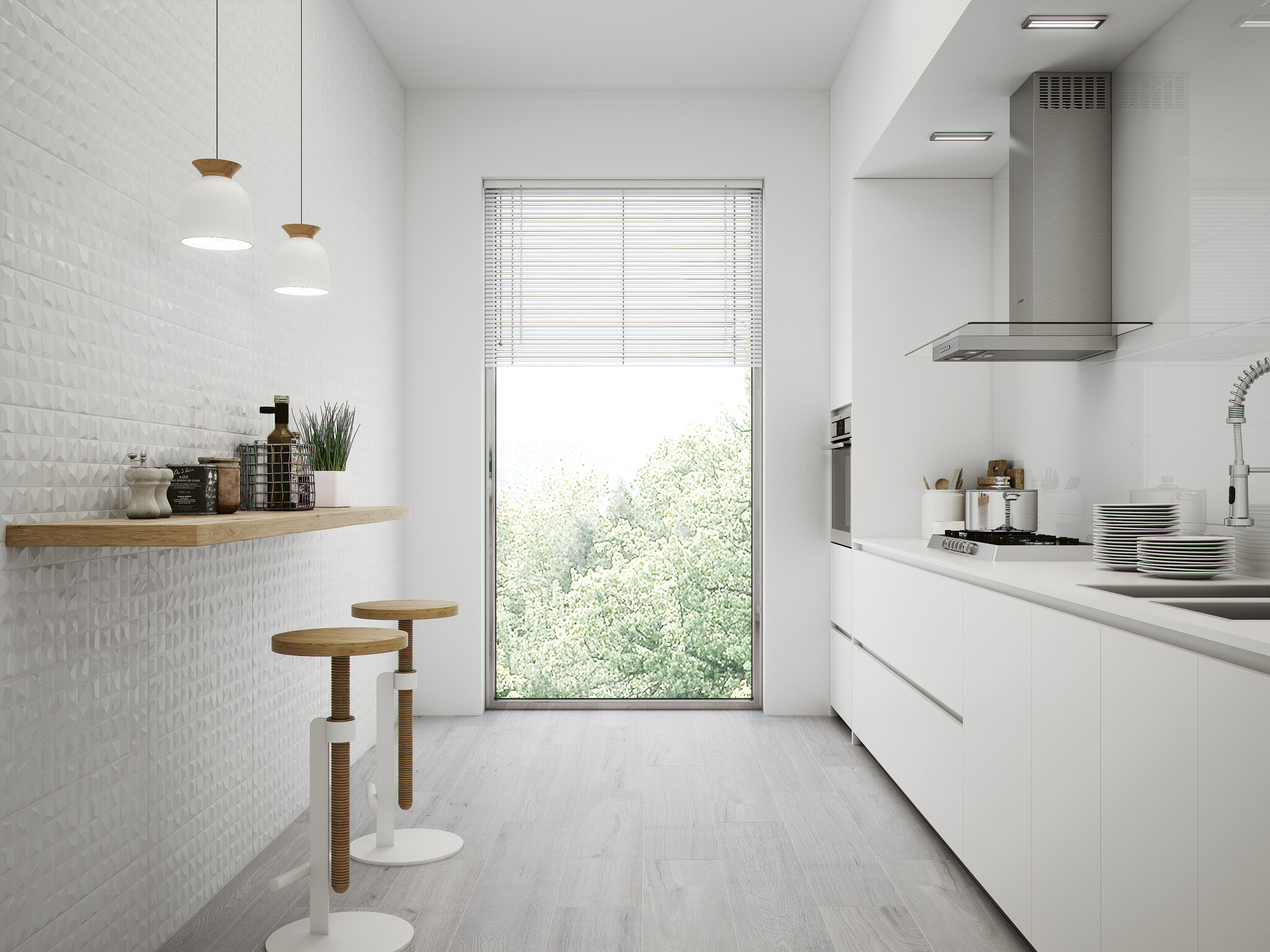 There is nothing purer than a white interior and the Pure series meets the challenge with these subtly beautiful kitchen wall tiles. Pure brings simple lines and sober, yet elegant finishes for sophisticated simplicity and vitalistic purity. Also available as bathroom tiles, the pieces that form part of this collection come in four formats and glossy or matte finish to adapt to all styles. In addition, the wall tiles pieces have reliefs that are ideal for making designs more dynamic.
