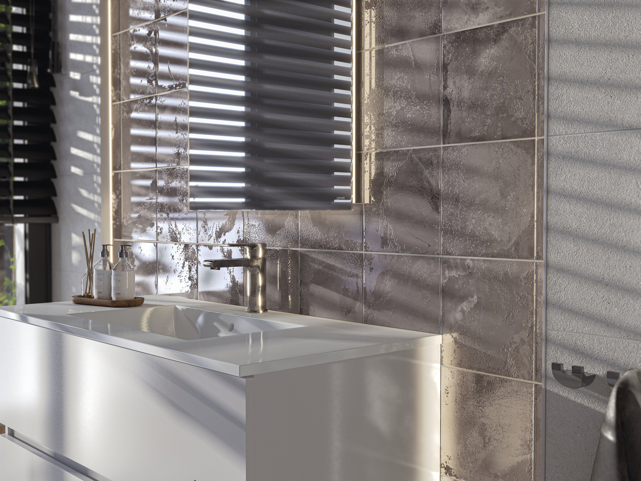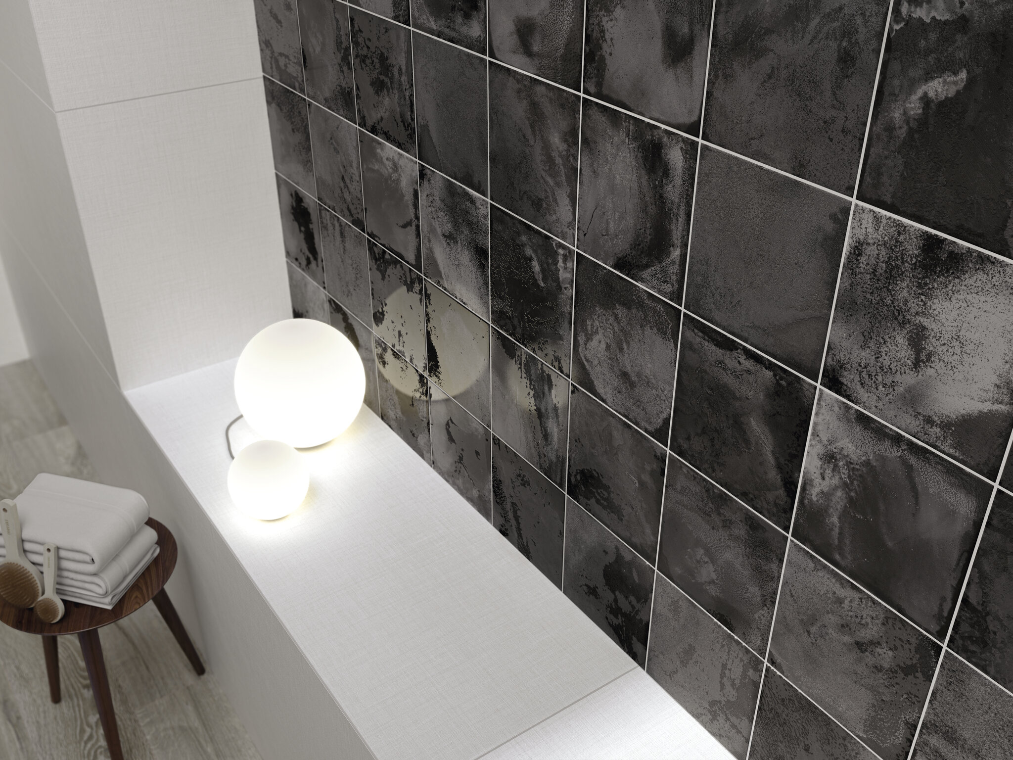 Within the Brick&More collection of small format tiles, we find Raku, a series that captures the essence of the ancestral Japanese technique of rapid, low-temperature stoneware firing known as raku. The textures resulting from this technique are simulated in each piece, with up to 6 different shades that invite unlimited personalisation. It is available in two formats, elongated or square, to fit into any space and any project.