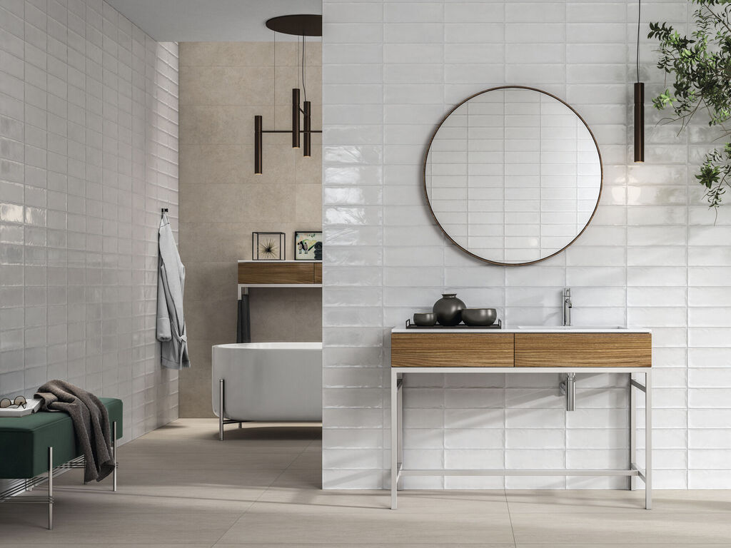 Its Nordic-inspired neutral tones and the subtle relief decorations that run through some of the pieces of this ceramics for interior wall tiles make the Titan series the ideal material for decorative projects. This collection is the fruit of ceramic innovation and brings with it original designs for kitchen and bathroom tiles. Titan is available in two formats and a wide variety of colours with a glossy finish that can be combined with embossed pieces from the same series.