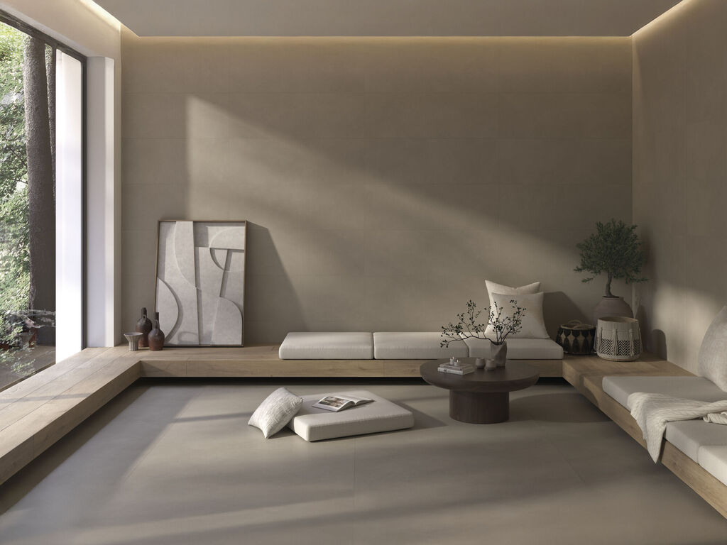 Origin connects with the essentials: the earth, texture and warmth of fired clay. This terracotta-effect ceramic collection translates the timeless beauty of natural materials into the language of contemporary design, with a warm, organic and sophisticated approach. Available in four mineral shades — Bone, Sand, Taupe and Terra — Origin comes in porcelain stoneware in 120x120 formats. 100x100, 60x120 and 60x60, including a non-slip version (60x120) suitable for wet areas, outdoor floors and continuous indoor-outdoor projects. Its matt ‘Brushed’ finish provides a silky surface that is natural in appearance and highly resistant, ideal for spaces that seek authenticity and durability. The collection is completed with 40x120 white-body wall tiles, including two pieces with decorative relief that allow you to build walls with character, texture and visual depth. Origin does not just cover surfaces: it anchors them to the essential, fusing ceramic tradition and architectural sensitivity in each piece.