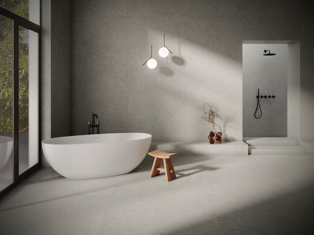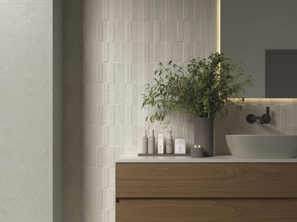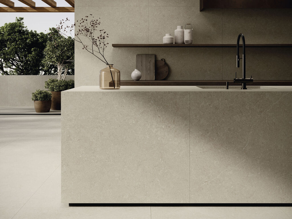 Mytos nace de la observación de la piedra natural y del deseo de trasladar su riqueza visual y táctil a un material cerámico de altas prestaciones. Esta colección porcelánica efecto piedra con vetas marmoleadas reproduce con precisión la mineralidad del material original, ofreciendo una estética atemporal con una fuerte carga sensorial. Disponible en cuatro tonos neutros —Bone, Sand y Greige—, Mytos abarca una gama de formatos versátiles, desde el compacto 60x60 hasta el espectacular 120x280, adaptándose a todo tipo de entornos: desde interiores residenciales hasta espacios arquitectónicos y fachadas exteriores. La colección incorpora además un formato de revestimiento en 30x90 cm en los tres colores, acompañado de un relieve a juego que aporta volumen y dinamismo a las paredes.