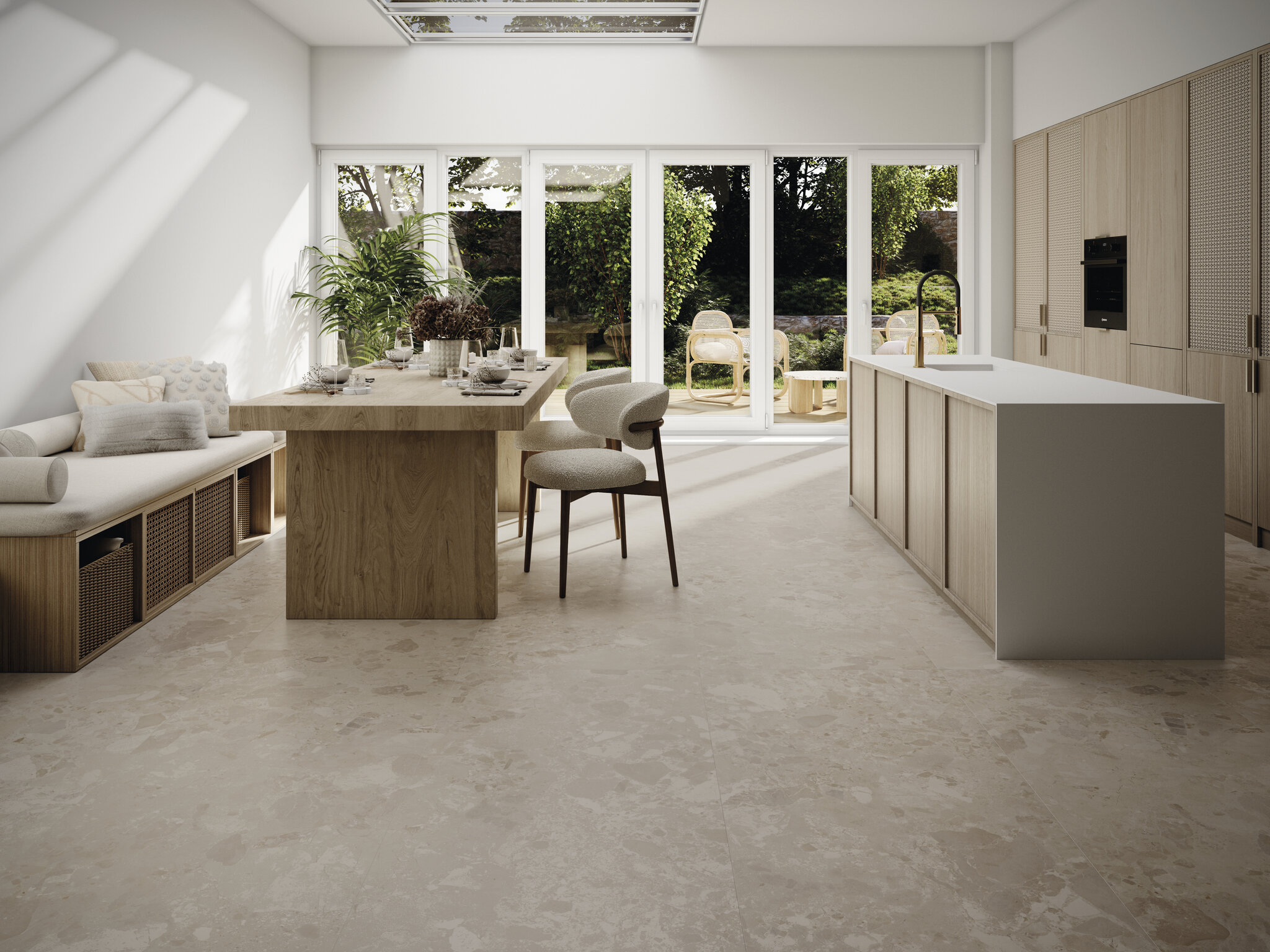 Edge réinterprète le terrazzo dans une vision contemporaine, minimaliste et architecturale. Son design monochrome, nuancé par de délicates particules minérales, crée des surfaces sobres et enveloppantes, parfaites pour les projets qui recherchent l'uniformité visuelle, l'élégance et la texture sans artifice. Fabriquée en grès cérame mat de haute qualité, cette collection est disponible dans des formats grand format tels que 120x280, 120x120, 75x150, 60x120 et 60x60, idéaux pour les sols et les revêtements dans les espaces commerciaux ou résidentiels. Grâce à la technologie Artech, Edge offre une profondeur visuelle supérieure et un toucher naturel, renforçant ainsi la sensation de réalisme du matériau. De plus, elle comprend une version antidérapante en 60x120, conçue pour les zones humides ou extérieures, sans perdre en continuité esthétique. Disponible en trois tons neutres — Bone, Sand et Greige —, Edge offre des solutions polyvalentes et sophistiquées qui s'adaptent aux styles épurés et aux matériaux de construction tendance. Une collection conçue pour ceux qui apprécient l'équilibre entre design, fonctionnalité et modernité.
