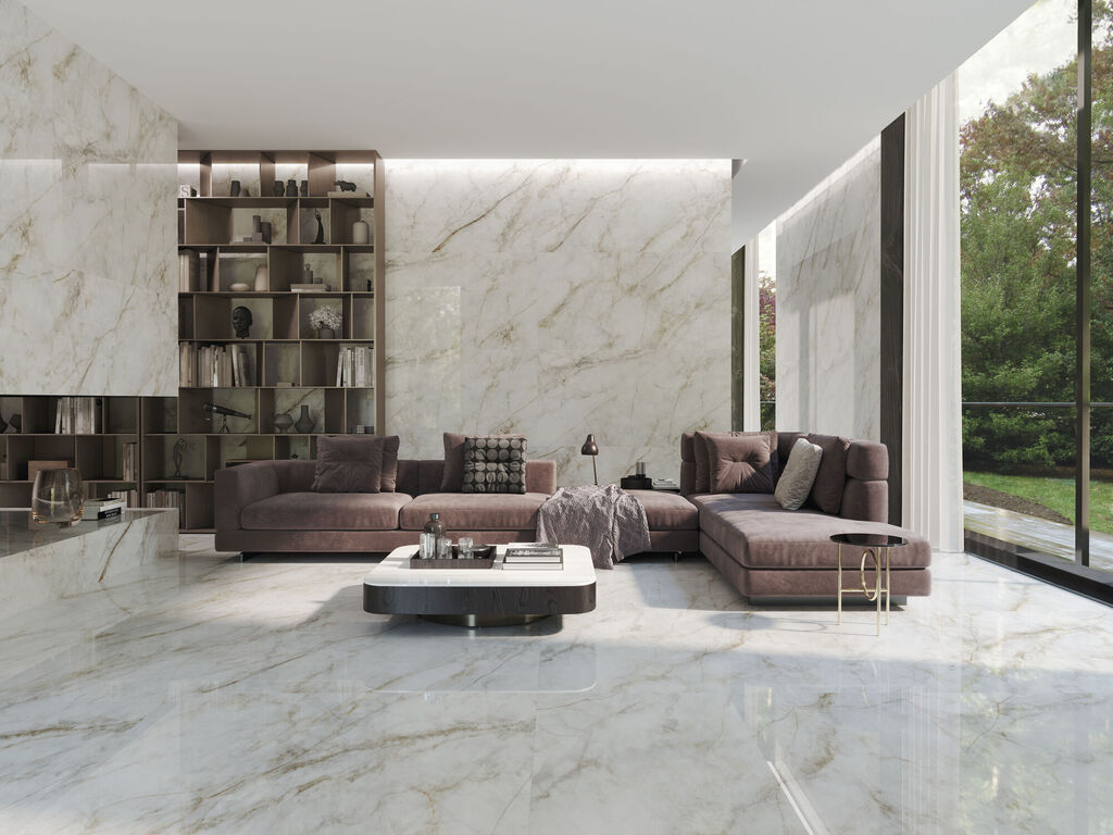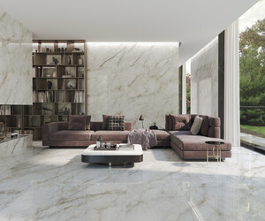 Joyce est synonyme d'élégance, avec un design marbré qui convient aux espaces les plus luxueux. Il y parvient grâce à un veinage doré sur un fond blanc immaculé. Il est également disponible dans une finition gaufrée qui apporte le dynamisme des formes géométriques. La même collection se décline en deux versions, en porcelaine et finition polie (disponible en format carré et en deux formats rectangulaires) à poser comme revêtement de sol ou en pâte blanche, idéale comme revêtement de façade