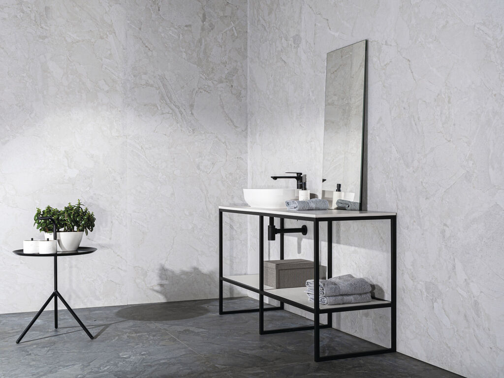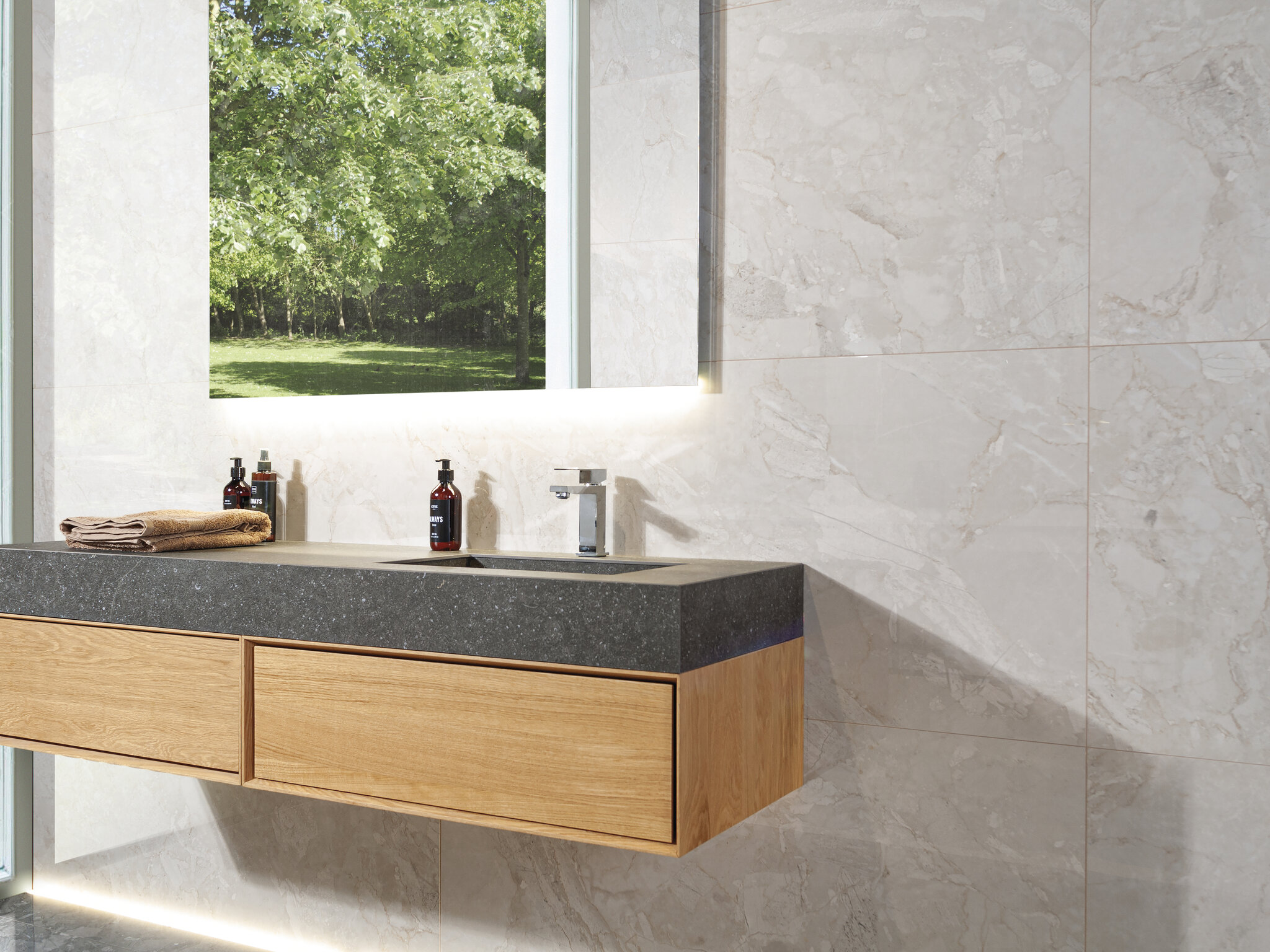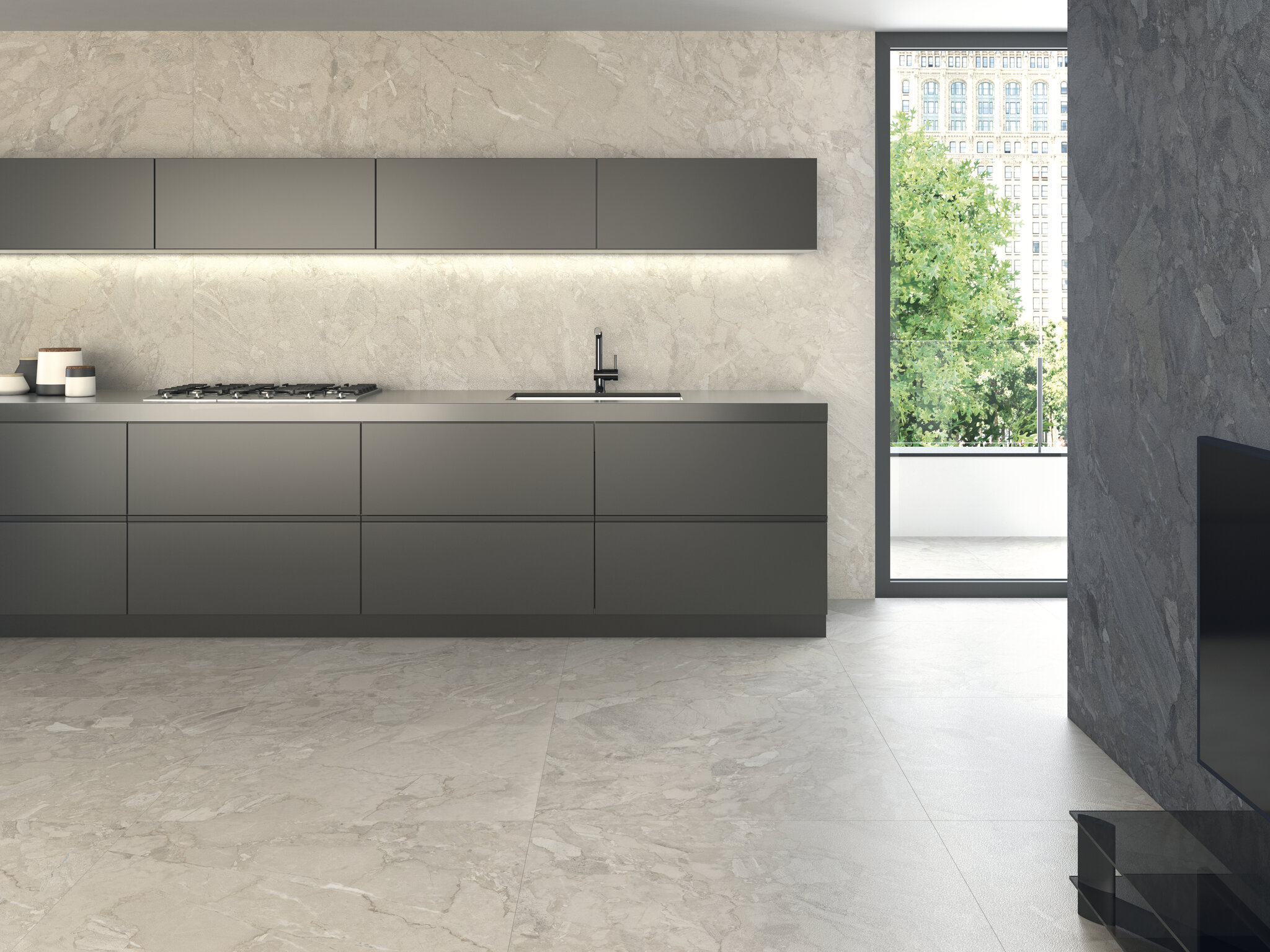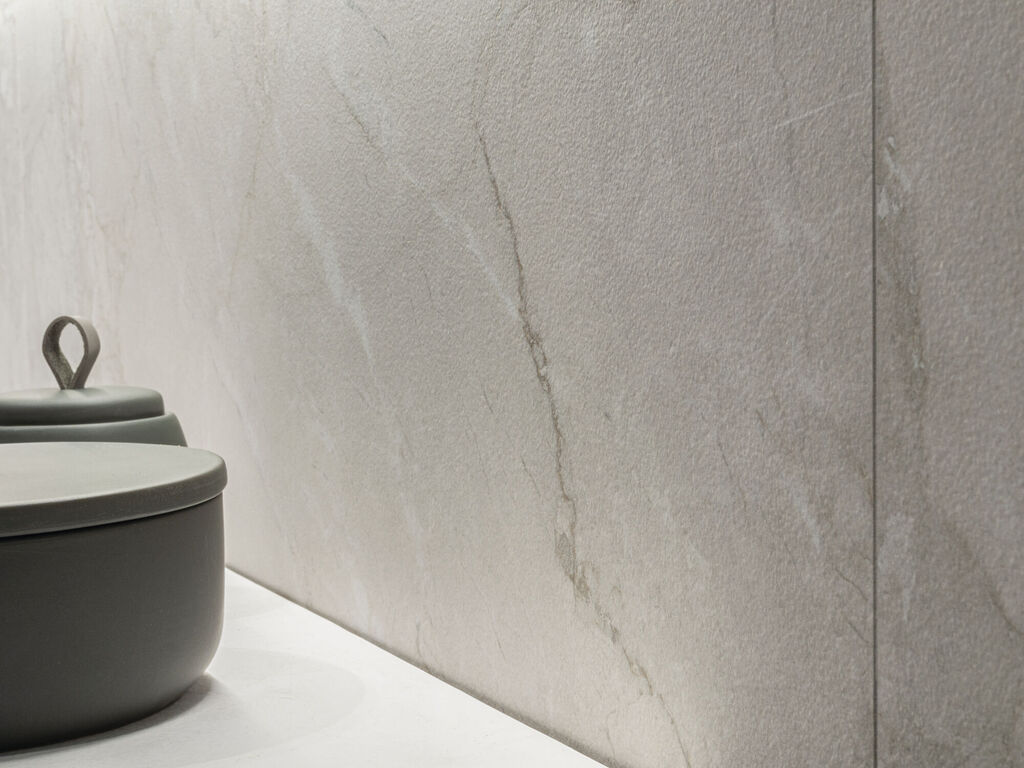 Kuartz présente un matériau qui naît de la combinaison de quartz et d'autres pierres naturelles le long de ses élégantes veines. Un mélange sinueux de textures qui convergent dans une palette de couleurs harmonieuses et douces donne naissance à une série de carreaux pour les cuisines et autres espaces. Également disponible en tant que revêtement mural pour les salles de bains, cette série se décline en quatre teintes et trois formats différents, ce qui en fait une collection très polyvalente, tant en termes d'applications que de formats et de finitions.