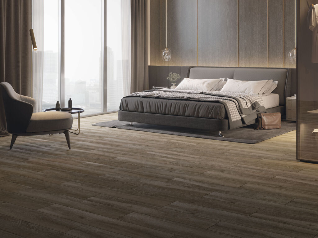 La beauté du bois naturel, un attrait presque ancestral fidèlement reproduit en grès cérame.