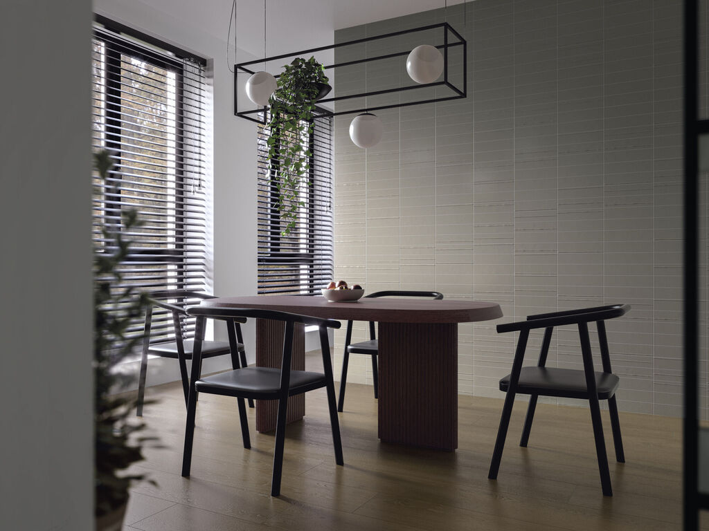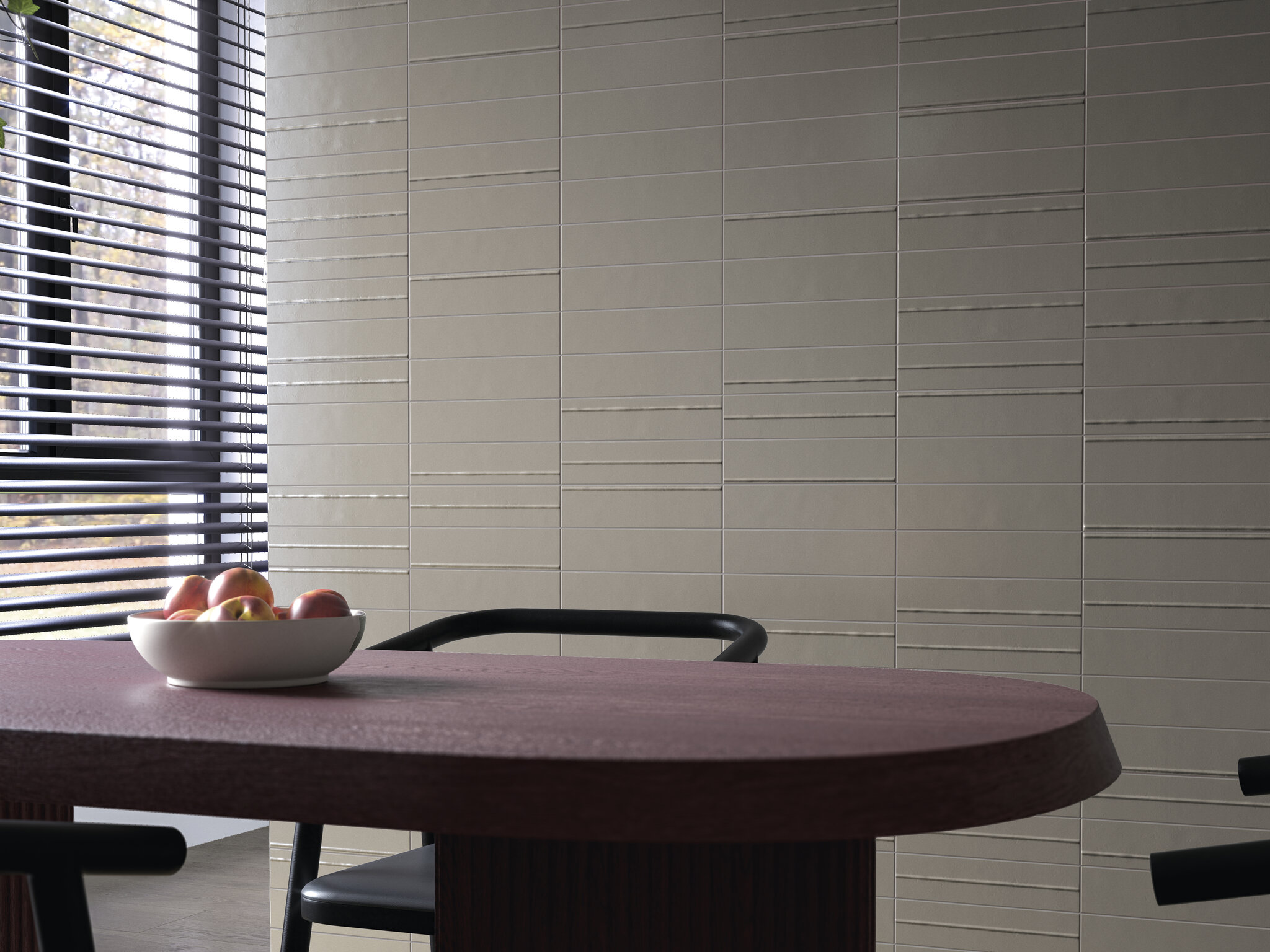 Spaced associe la pureté des tons unis à de délicats reliefs qui apportent une nuance différentielle sans perdre l'essence minimaliste ni son caractère équilibré. La finition mate met en valeur la douceur du ton choisi, en obtenant un effet visuel élégant, enveloppant et intemporel qui s'adapte naturellement aux différents styles décoratifs. La série, qui fait partie de la collection de petits carreaux muraux de Brick&More, est fabriquée en pâte blanche et dans un format de 7,5 x 30 cm. Elle se décline en six teintes : Ivory, Terra, Sage, White, Ocean et Greige, chacune disponible en deux versions : regular et infinite.