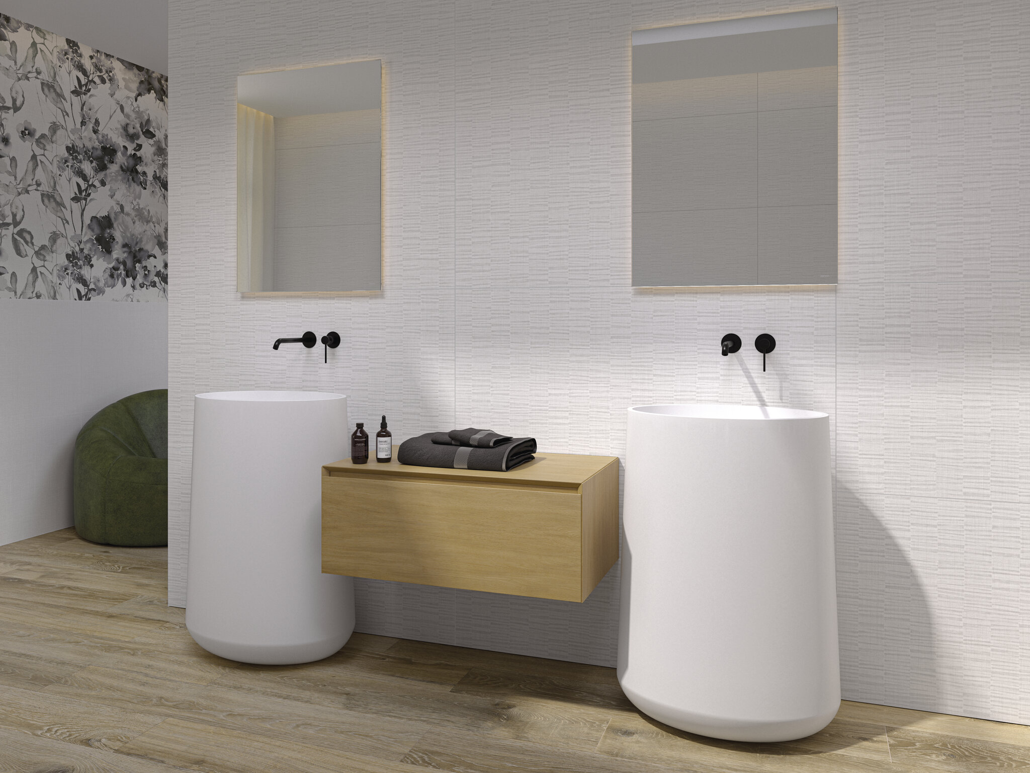 Villore simule dans ses versions des matériaux aussi différents que le ciment ou la pierre naturelle, tout en surprenant avec des pièces décoratives aux motifs floraux. Les couleurs de base sont le blanc et l'ivoire effet ciment. Swan donne du relief aux carreaux et simule de petites pierres allongées. Dans sa version Elixir, les tons du revêtement deviennent grisâtres ou roses avec des motifs floraux dont la couleur varie selon le modèle.